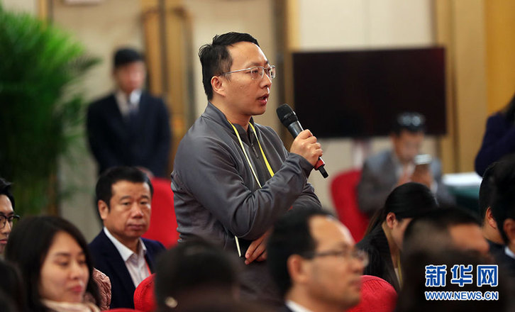 新华网记者提问。新华网 郝广鹏摄