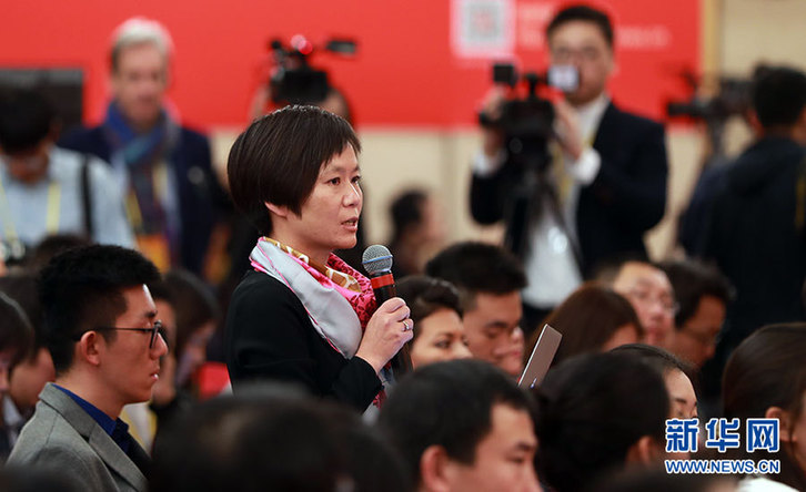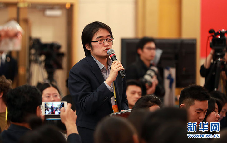 凤凰卫视记者提问。新华网 郝广鹏摄