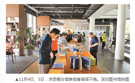 深圳图书馆的工作人员告诉记者,11月4日、5日是“求贤阁分馆”迎来的第一个休息日,形成了一个服务小高峰。短短几天内分馆就新增办理读者证60多个,借还图书300多册次。