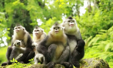 五个家族的滇金丝猴在白马雪山自由自地生长繁殖,可爱的滇金丝猴总是仰着鼻子,嘴唇像人的嘴唇一样红,看着猴爸爸妈妈带着自己的孩子们在这里享受着家庭的温暖,我很欢喜。!这种欢喜一直在我的记忆中。