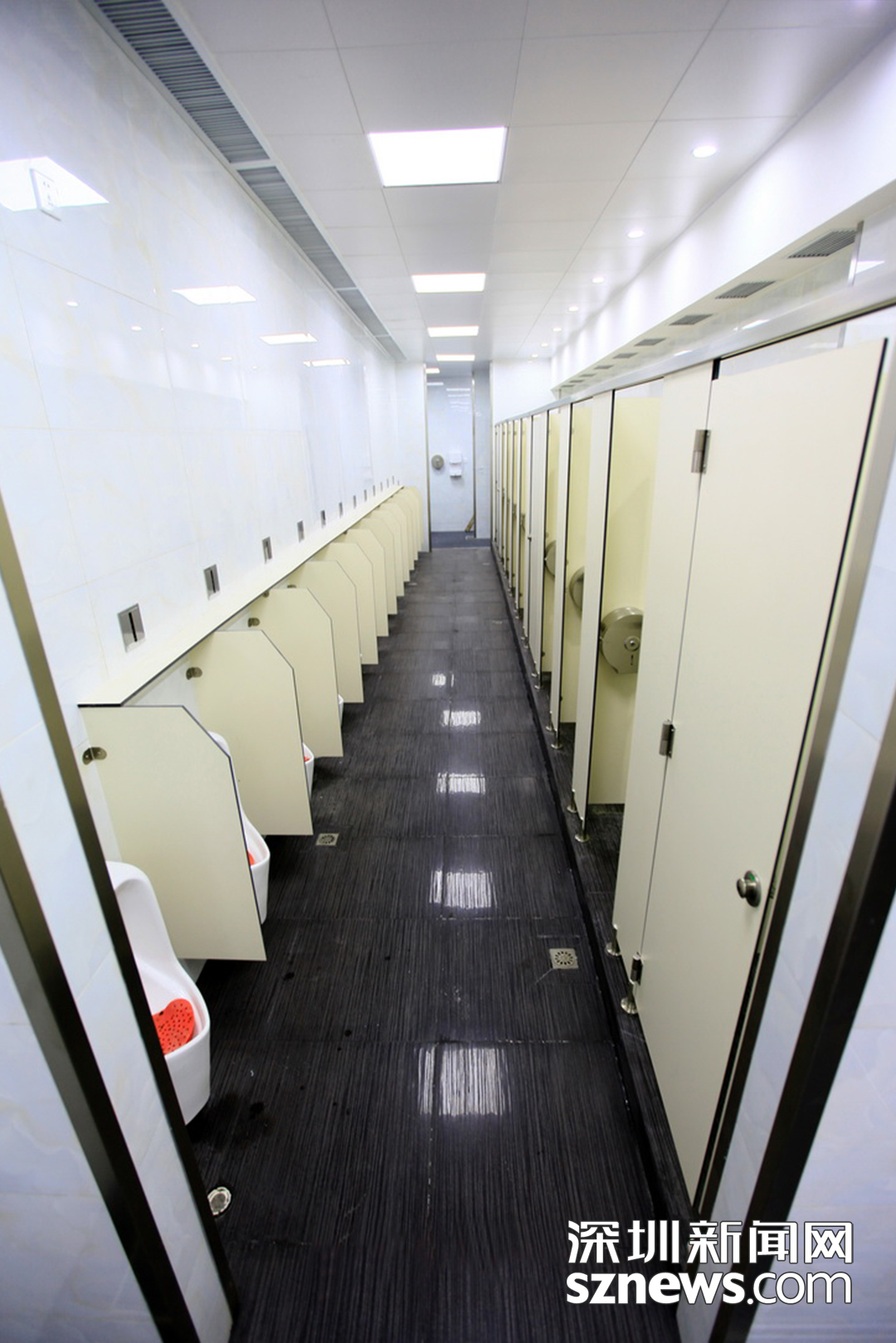 今年以来,口岸中心按照市口岸办和深国免集团有关 “厕所革命”的要求,结合市城管局的公厕改造标准,投入经费120多万元对该洗手间进行整体改造。目前南侧(男、女各一间)洗手间已改造完毕,并于今年“十一”期间投入使用。改造重点内容包括:(1)加大排污管。(2)设置自动感应、人工、定时三种冲水方式。(3)安装中央空调设备。(4)安装3台排气设备,每厕格安装抽气口,改造后实际换气次数达到35次/小时,远超过换气次数标准15次/小时,抽气量为标准2倍。(5)每厕格提供免费厕纸,洗手台提供擦手纸、洗手液,洗手台周围安装防滑地垫。(6)更换墙砖、地砖、隔板、天花。(7)增设专业环保除味剂设备。(8)增加了一些人性化的设施,比如设置了儿童洗手台、母婴室。同时,加强保洁人员的管理,严格按照口岸厕所“十个无”标准进行保洁。