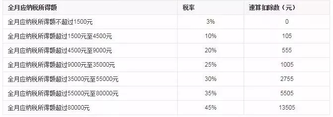根据现行的个人所得税法,我国目前个人所得税中工资、薪金所得,适用7级超额累进税率,从最低的3%,到最高的45%。收入越高,对应的税率也就越高。