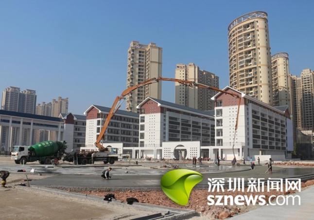 深圳援建项目之一深河中学的建设已进入最后阶段,记者在现场看到,教学楼已经完工,一个个教室宽敞明亮,教学楼一侧的体育场正在进行水泥浇灌,该校教学楼、体育馆、实验室一应俱全。