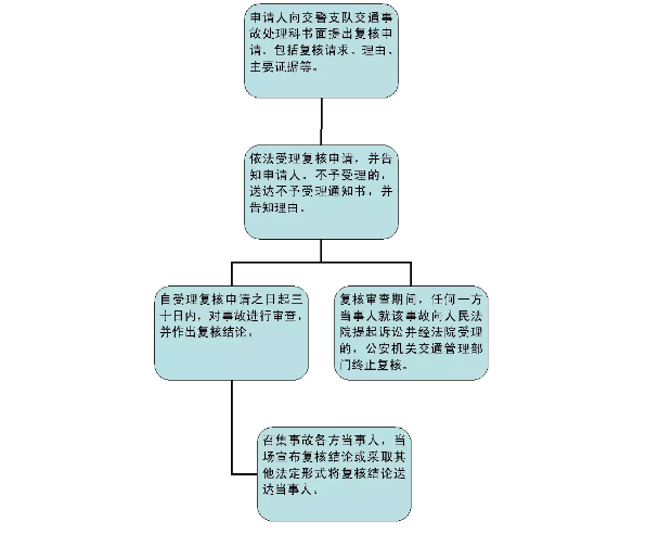 第一,当事人可以申请复核。公安部《道路交通事故处理程序规定》规定,交通事故当事人可以自道路交通事故认定书送达之日起3日内,向上一级公安机关交通管理部门提出书面复核申请。上一级公安机关交通管理部门自受理复核申请之日起30日内,对道路交通事故事实是否清楚、证据是否充分、适用法律是否正确、道路交通事故责任划分是否公正、道路交通事故调查及认定程序是否合法进行审查,并作出复核结论。