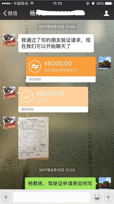 2017年8月,陈先生与宝华驾校教练员杨某银签《驾驶员培训合同》,并支付了全款培训费用8000元(见微信截图)。2018年1月,陈先生通过科目二考试后,与杨某预约科目三考试。杨某提出要再次收费(详见聊天记录)。陈先生与杨某沟通无效后,向该教练挂靠的宝华驾校投诉维权,宝华驾校反应“其一,驾校不接收学员不与学员签合同;其二,教练的投诉先调查了解”,后续再无反馈。