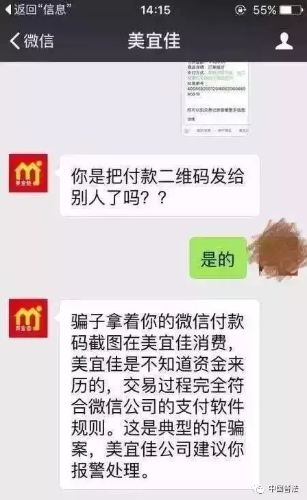 杨女士随即加了这个公司的公众号进行询问,对方告知是骗子拿着微信付款码截图在美宜佳消费,是典型的诈骗案,建议杨女士赶紧报警处理。