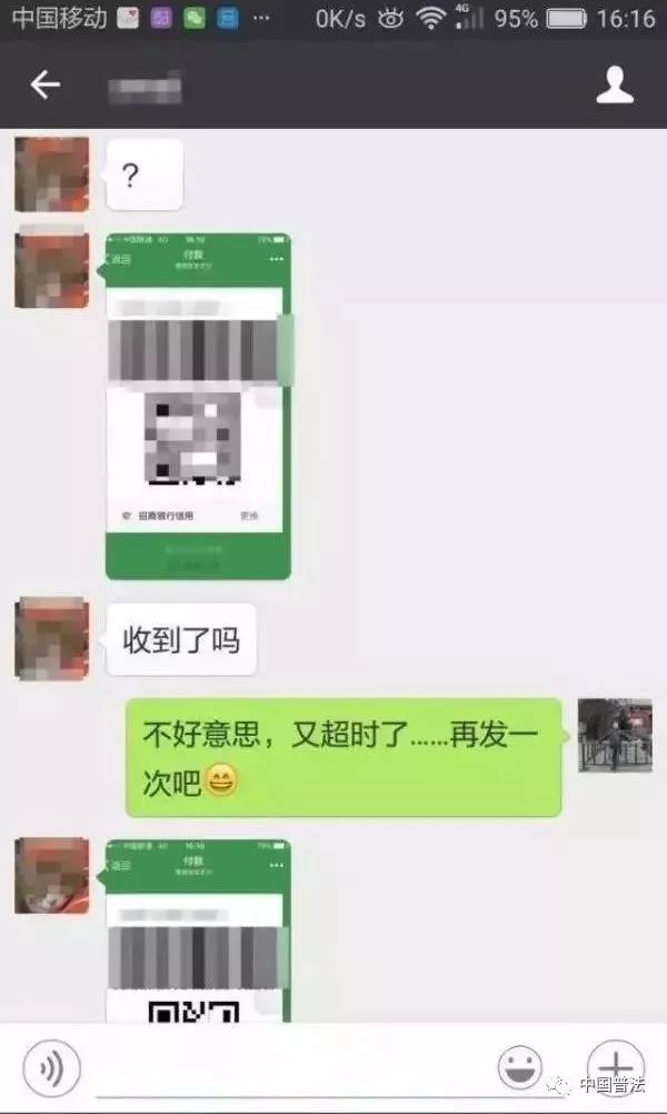 就这样,杨女士给对方发了三次截图后,对方还是说失效,并让她再次发送付款二维码。