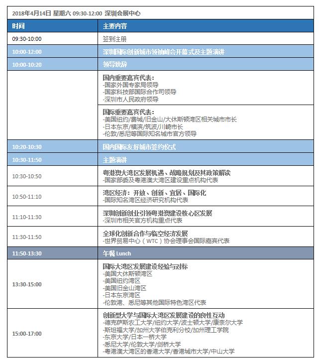基于发展论坛务实显著的举办成果与广泛的资源渠道,结合粤港澳大湾区建设发展重大发展机遇,本届发展论坛将特设深圳国际创新城市领袖峰会,以国际大湾区创新发展与人才驱动为主题,将邀请世界级湾区美国大休斯顿湾区、纽约湾区、旧金山湾区、日本东京湾区的相关城市市长以及英国伦敦、澳大利亚悉尼的政府领导、创新机构领袖、科技园区重点嘉宾代表、产业机构领袖,同深圳市官方主要领导以及国内相关城市、相关湾区主要领导,围绕国际大湾区发展建设经验与对标、创新型大学与国际大湾区发展建设的良性互动、科技园区驱动国际大湾区创新发展以及产业创新引领国际大湾区未来等四大内容共同进行探讨。