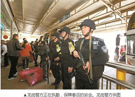 据介绍,春运启动后,全市公安机关实行领导“双值班”制,每天2.5万余名警力在岗执勤、备勤,各机训大队始终保持一半以上警力驻守,交警部门每天安排1400名应急警力在47个重点客运场站应急安置点随时待命。副市长、公安局长徐文海及市公安局领导多次带队到一线检查安保落实情况,现场解决实际问题。同时,还成立专班,负责与广州、东莞、中山、惠州、河源、清远、韶关、汕尾等与深圳毗邻地市公安局协调建立交通管理联勤联动机制,以实现信息互通、资源共享,有效确保了春运安保工作的持续稳定开展。