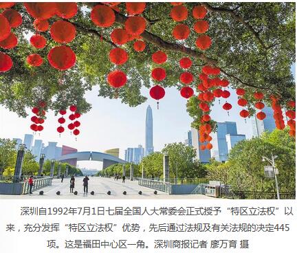 从1992年至今,深圳通过法规及有关法规的决定445项,目前现行有效法规167项(特区法规128项,较大的市法规39项),初步形成了与深圳经济社会发展相适应、与国家法律体系相配套、与国际惯例相接轨的法规框架,助推深圳成为我国影响最大、建设最好的经济特区。