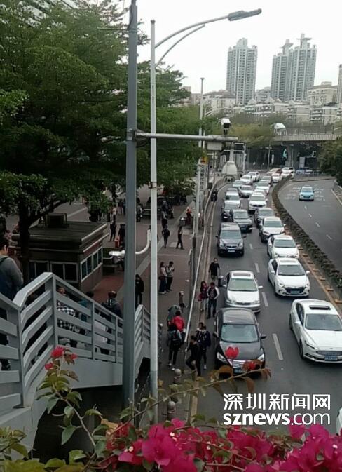 截至下午15时43分,福田口岸出境客流量少,入境客流量较多。外围交通堵,停车场有排队显现。