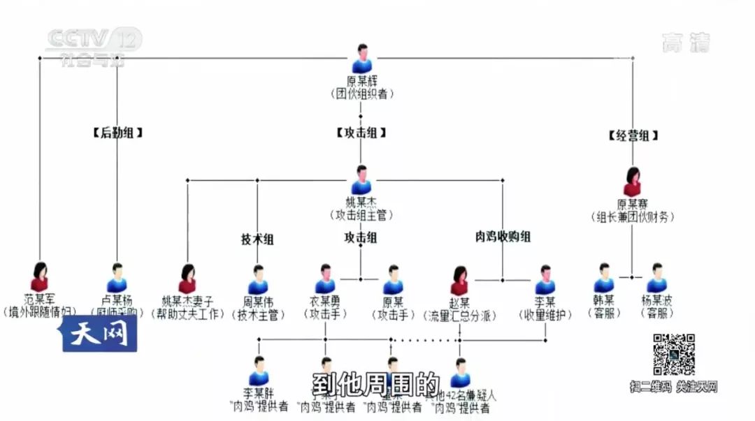 通过审讯掌握到他们把这批“肉鸡”的使用权交给了一个叫“暗夜”的境外攻击团伙,这是一个全国顶尖的黑客组织,叫“暗夜攻击小组”。团伙成员以原某辉为首十余人。