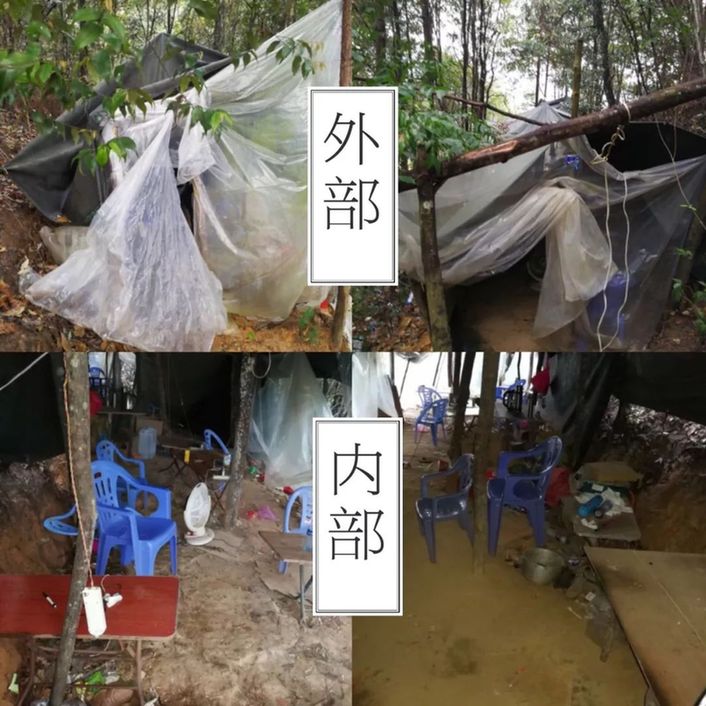 犯罪团伙在深山老林搭起窝点,生活用品一应俱全。