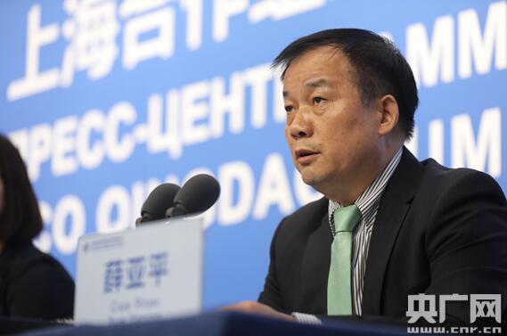 中国文化和旅游部旅游促进与国际合作司司长薛亚平介绍上合框架下文化和旅游领域合作情况 央广网记者 李雪南 摄