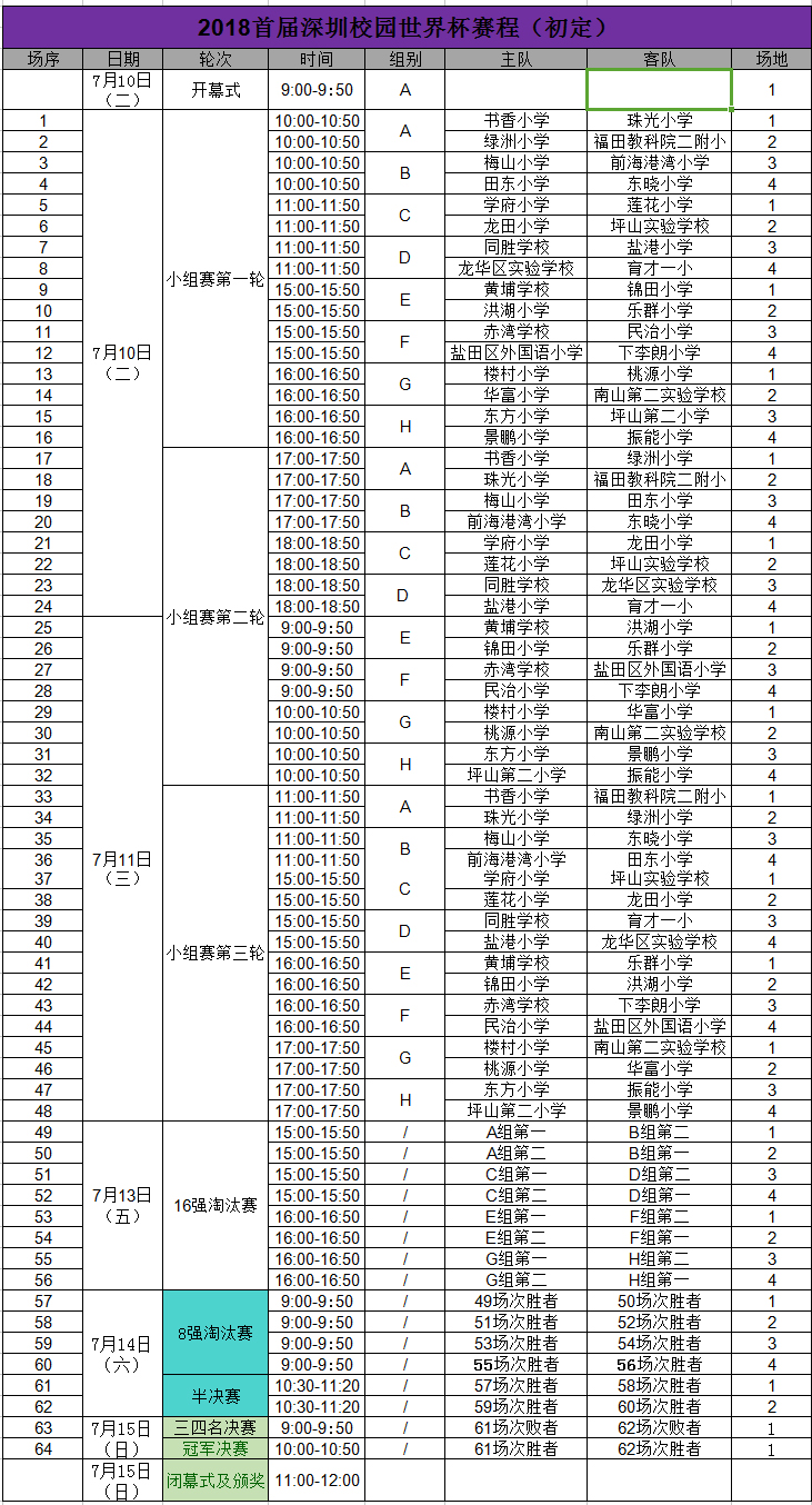 赛程表