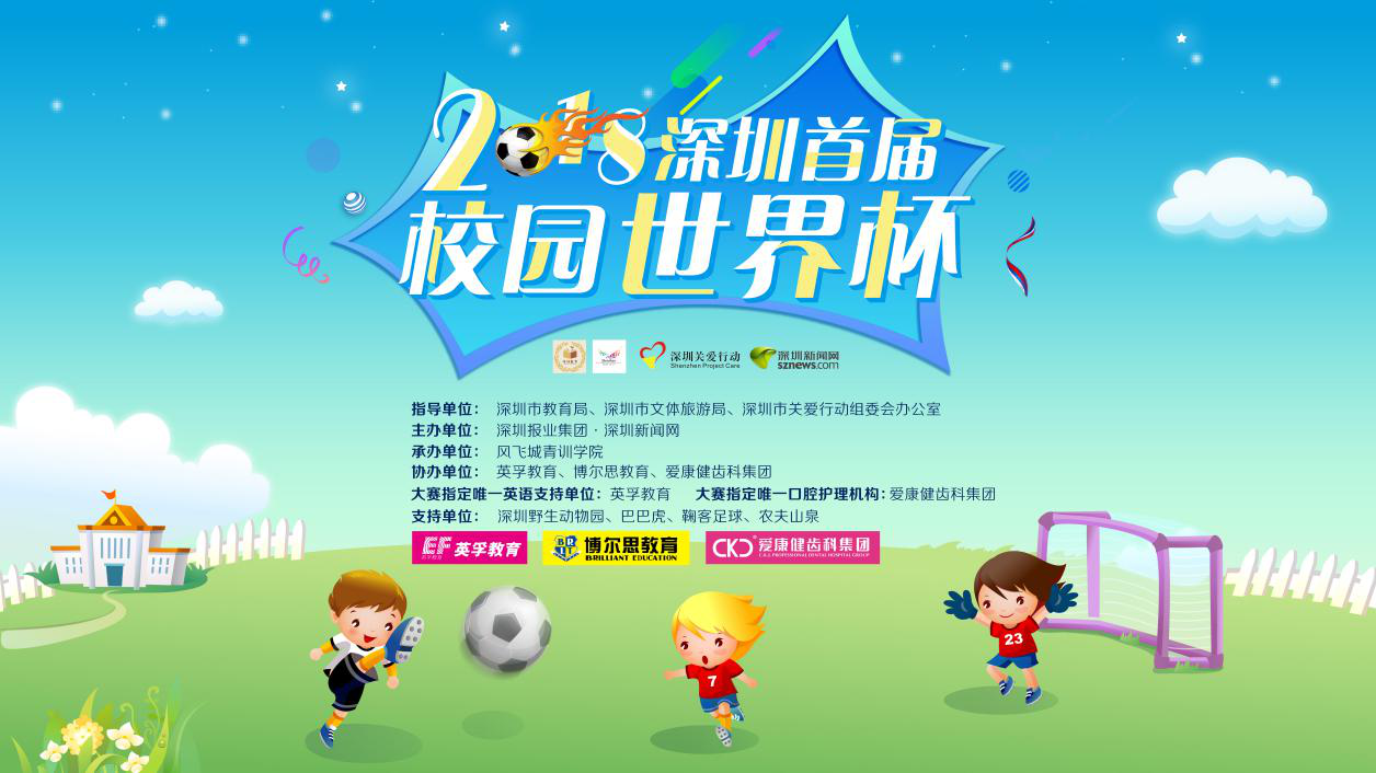 为贯彻“普及+提高”的校园足球方针,普及、传播深圳校园足球,推动校园足球工作健康发展。由深圳市教育局、深圳市文体旅游局、深圳市关爱行动组委会办公室指导,深圳新闻网主办,风飞城青训学院承办的2018深圳首届校园世界杯将于2018年7月10日-15日在深圳市仙桐体育公园足球场举行。