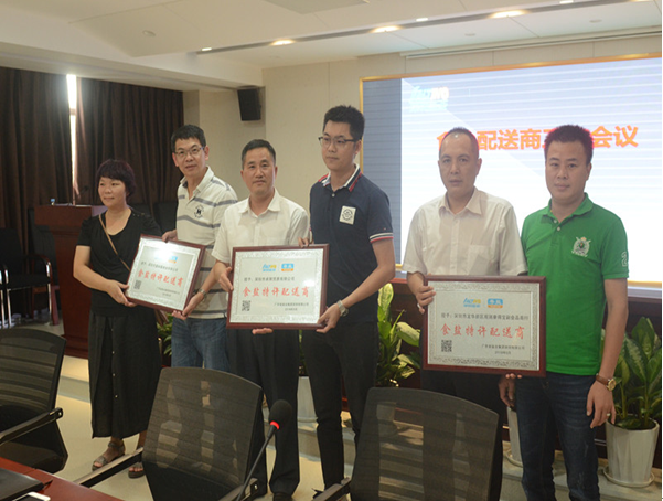 会议最后,黄志平副总经理、黎信光主任代表深圳盐业为配送商代表颁发了《深圳盐业食盐特许配送商》牌匾,现场气氛活跃。