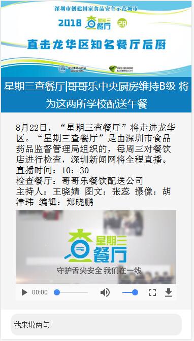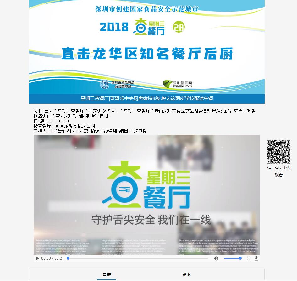 “星期三查餐厅”节目组采用深圳新闻网直播平台,记者使用手机或摄像机进行拍摄,照片、直播视频、文本内容等回传后方编辑,编辑在直播平台上进行内容整理,将执法行动全程进行视频+图文全程直播。网友无需下载任何客户端,可通过Internet直接在PC、移动客户端等设备上实时观看执法过程,并能在线对直播内容进行评论。