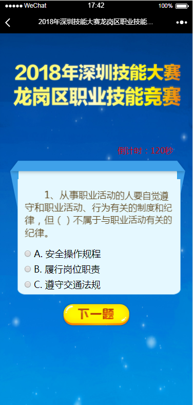 ① 2018年深圳技能大赛龙岗区职业技能竞赛: