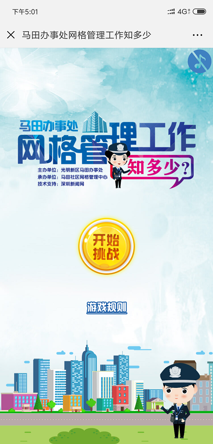 随着当前光明新区经济和社会的飞速发展,网格巡查管理工作环境日趋复杂。为此,马田办事处以社区网格化为抓手,积极带领业主、楼长、住户主动参与到楼栋的管理和社区的建设,使他们从小“家”迈向大“家”,家家参与、人人行动,让安全文明新风形成常态,营造生机勃勃、欣欣向荣的社会氛围,在马田辖区打造共建共治共享社会治理格局。“马田办事处网格管理工作知多少”线上有奖竞答活动,由光明新区马田办事处主办,马田社区网格管理中心承办。此次答题活动自8月15日9点启动,截止至8月19日23点59分,为期5天。答题分为“我是网格员”入口、“我是楼长”入口和“阿拉地球人”三个入口。通过楼长入口进入的用户,需输入马田辖区楼长身份证或港澳通行证号方可答题,网格员入口则需输入马田辖区网格员有效证件号码进入对应的答题页面。在每次答题时,答题系统将随机抽取10道题,用户须在120秒的时间内完成,答对8题以上即视为闯关成功,可获得一次抽奖机会,有机会获得100元、50元、10元、5元、2元不等的微信红包。