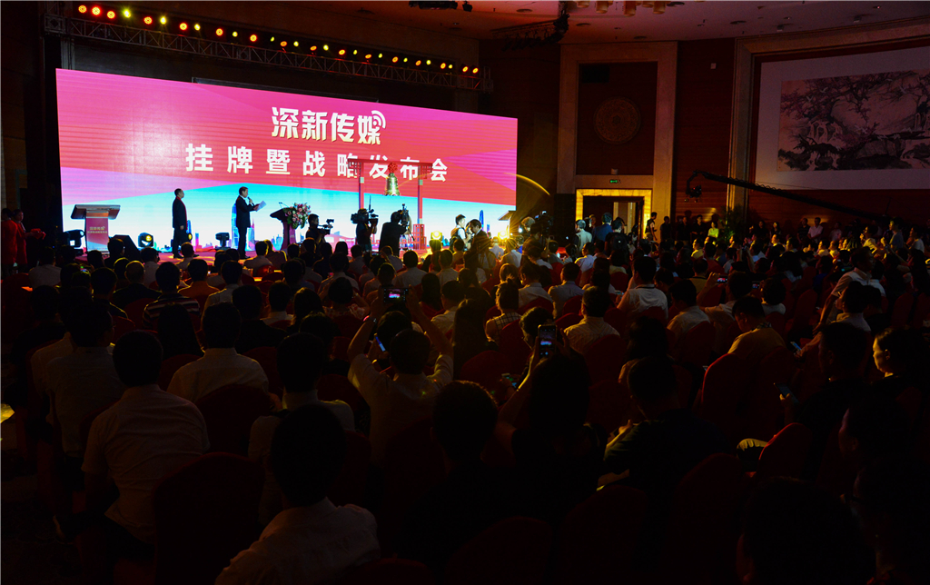 案例介绍:深圳新闻网传媒股份有限公司(以下简称“深新传媒”)在深圳市五洲宾馆举行深新传媒挂牌暨移动战略发布会。发布会由深圳报业集团党组副书记、副社长、总经理王跃军主持。来自深圳市各党政机关、企事业单位和商家代表近500人齐聚一堂,共同见证深新传媒挂牌及战略发布会。作为广东省第一家登陆资本市场的重点新闻网站,深圳新闻网籍此开启了自己的新时代,也用战略规划许下了一个新未来。广东省委宣传部副部长、省网信办主任黄斌、深圳市委常委、宣传部长李小甘、深圳市人大常委会副主任蒋宇扬、深圳市副市长吴以环等领导出席了发布会。黄斌、李小甘、蒋宇扬、吴以环,以及深圳市委宣传部副部长吴忠,深圳报业集团党组书记、社长陈寅共同为深新传媒敲响钟声。