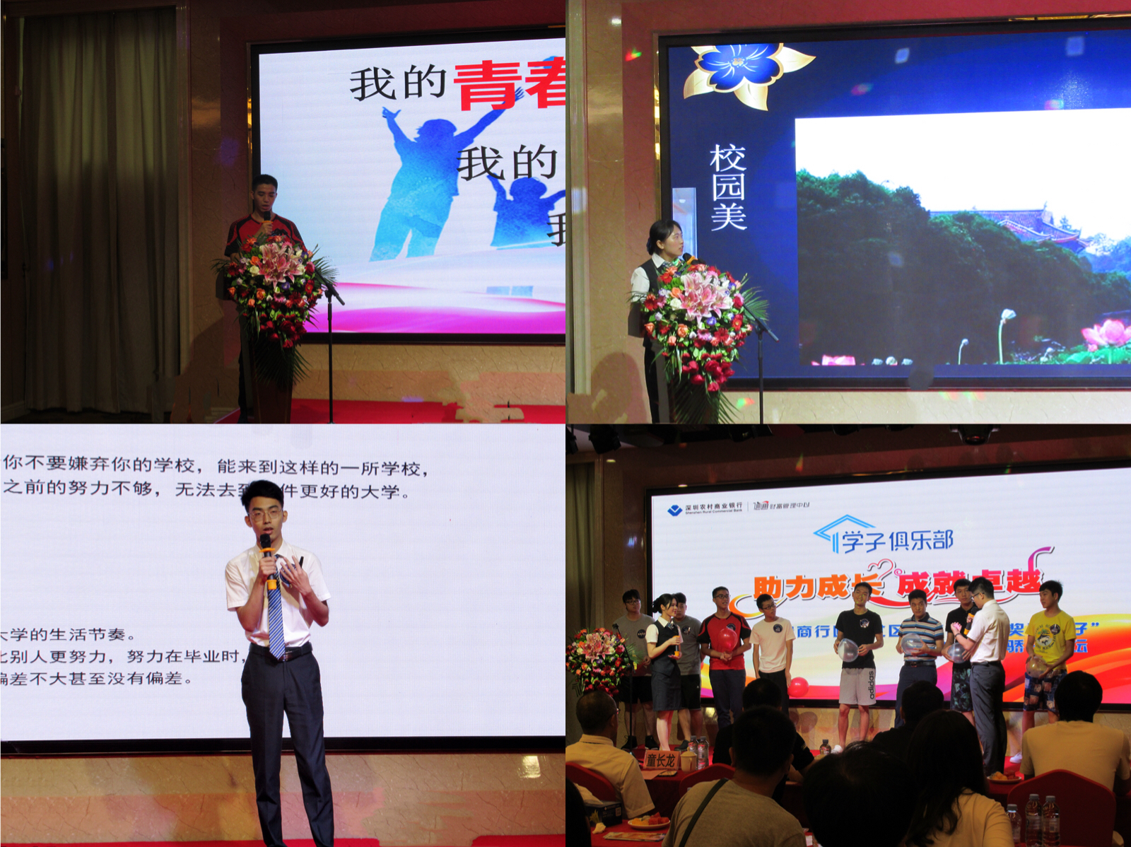 优秀学子代表李佳沅上台发表感想及对未来的规划,引发了现场学子的共鸣。深圳农商行坪地支行的两位新员工也分享了他们大学的生活经验,希望可以对优秀学子们有所启发。台下的学子们积极参与有奖问答活动,获得了坪地支行准备的精美礼品。