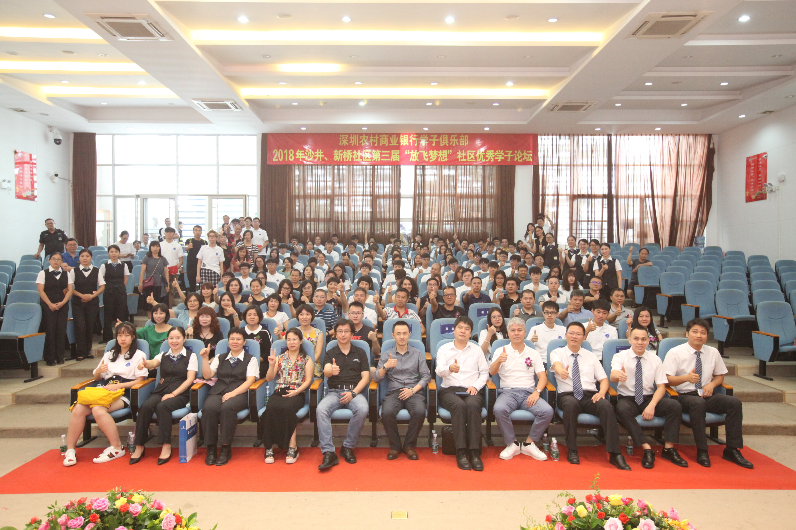 2018年8月22日,深圳农商行沙井支行举办的第三届“放飞梦想”优秀学子论坛活动在沙井中学圆满完成。本次论坛从心理、学习、生活、理财、实践等角度,为即将踏入大学的社区学子们提供规划参考,并给予学子们“信通英才奖学金”奖励。