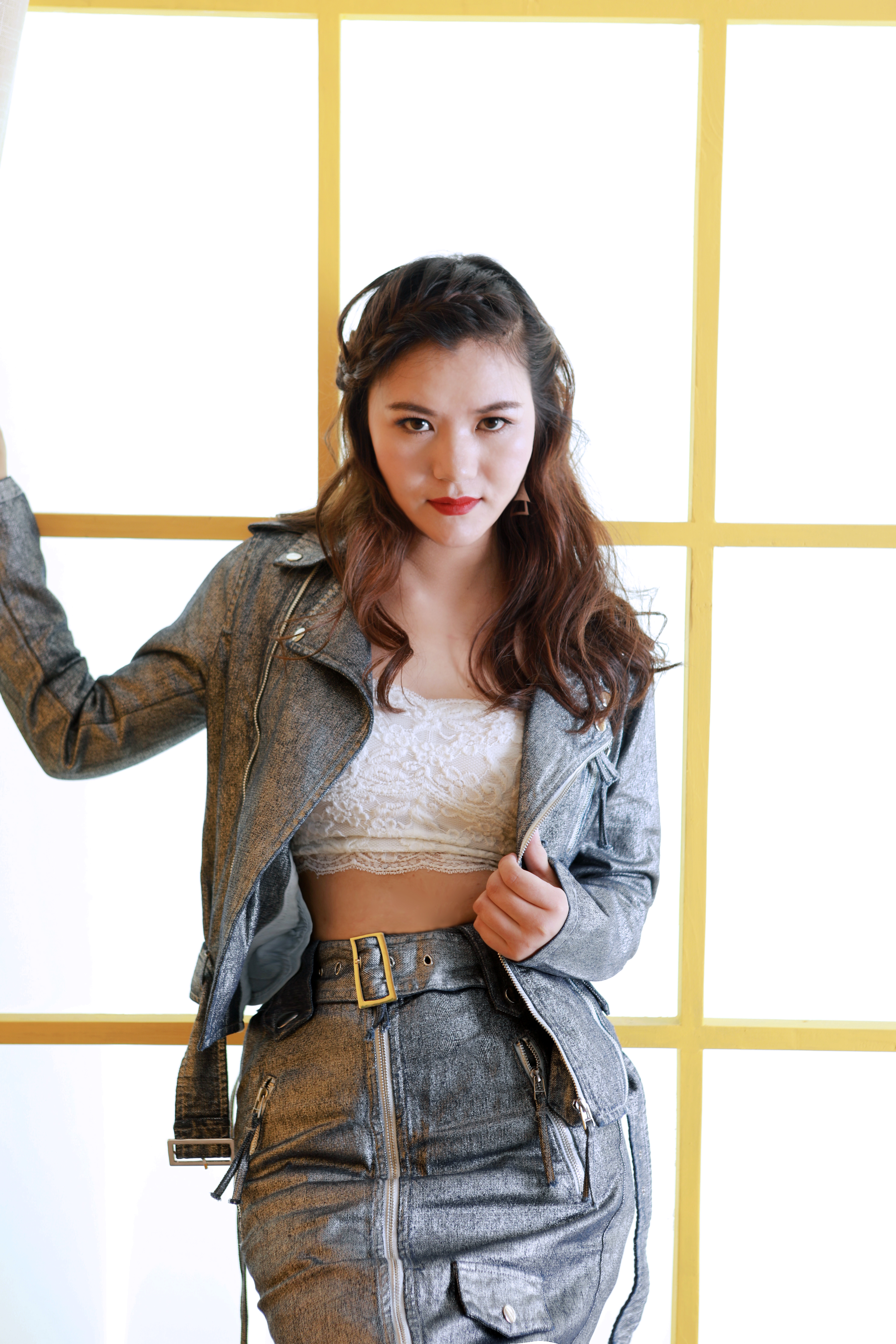 服装师给小田田选择了一套金属色泽的牛仔夹克&半裙,金属材质和夹克让牛仔更显霸气,温柔的半裙又调和了刚硬感,刚中带柔的感觉,让刚才甜甜的小田田又御姐了起来呢。
