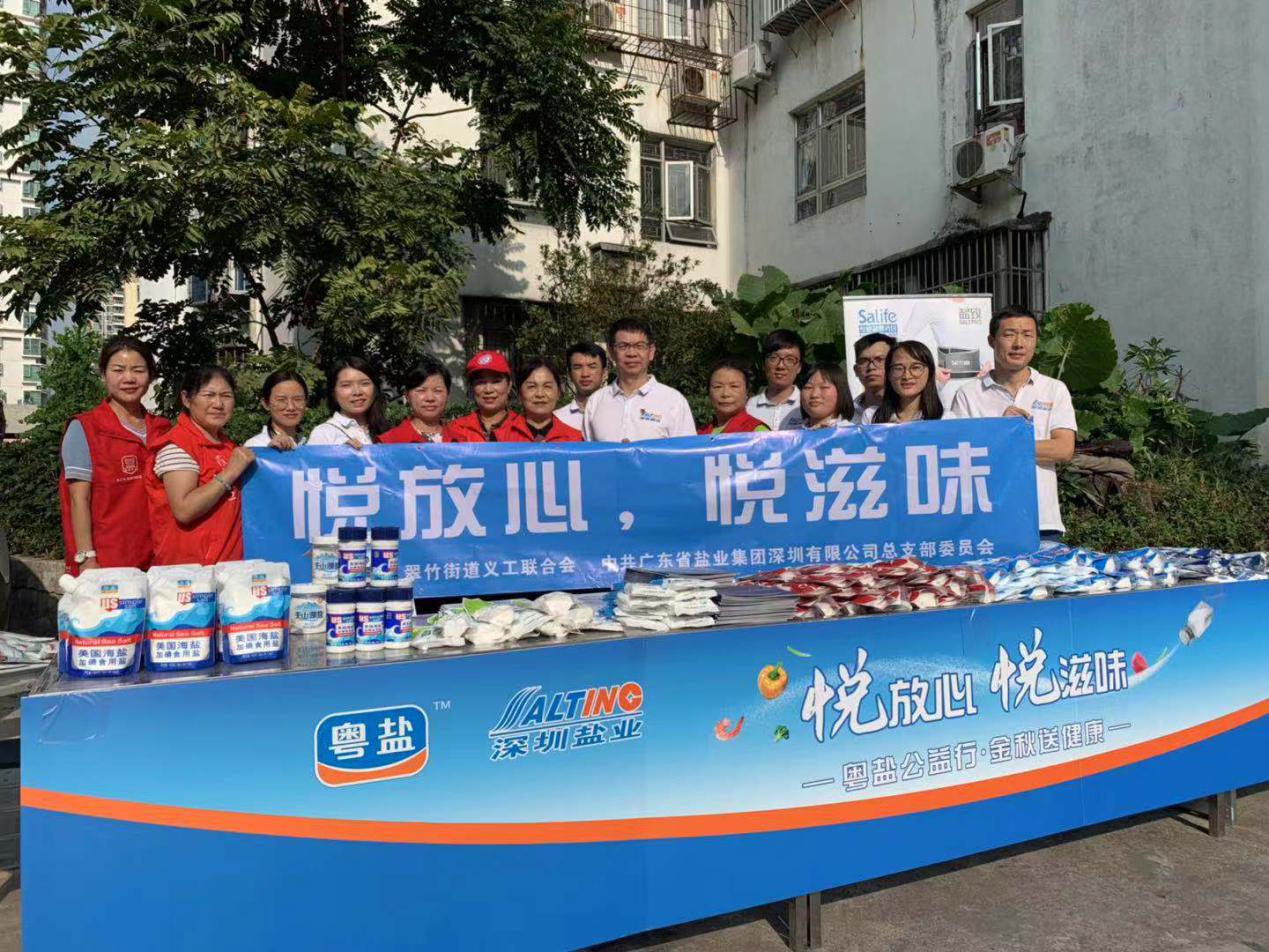 为了贯彻落实省集团公司“粤盐公益行•金秋送健康”系列宣传活动的方案要求,推进“强品牌、增品种、提品质、优服务”的战略思路,提高“粤盐”品牌的社会知名度和美誉度,加大海湖盐主销产品、泛盐产品、健康用盐知识科普宣传力度,深圳公司联合“翠竹街道义工联合会”在罗湖区翠华花园开展重阳送温暖活动。