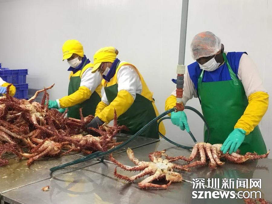 智力蜘蛛蟹加工基地, 产于南极洲海域。 李仁奇 摄