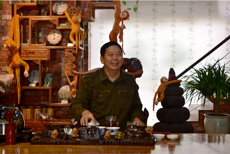 魁梧身体内藏着一颗顽童的心、风趣、幽默。因生肖属猴并经常流连于云南各大茶山寻觅古树普洱茶,自诩“猴子”,一生为“茶痴”。从事古树普洱茶研究推广几十年,把自己的青春奉献给了云南,把自己的茶品奉献给了大家,深谙茶经茶道,门下弟子数百人,茶客无数,传承普洱茶艺。对古树普洱茶文化的推广及古树普洱茶保育发展鞠躬尽瘁,实乃大师的风范。