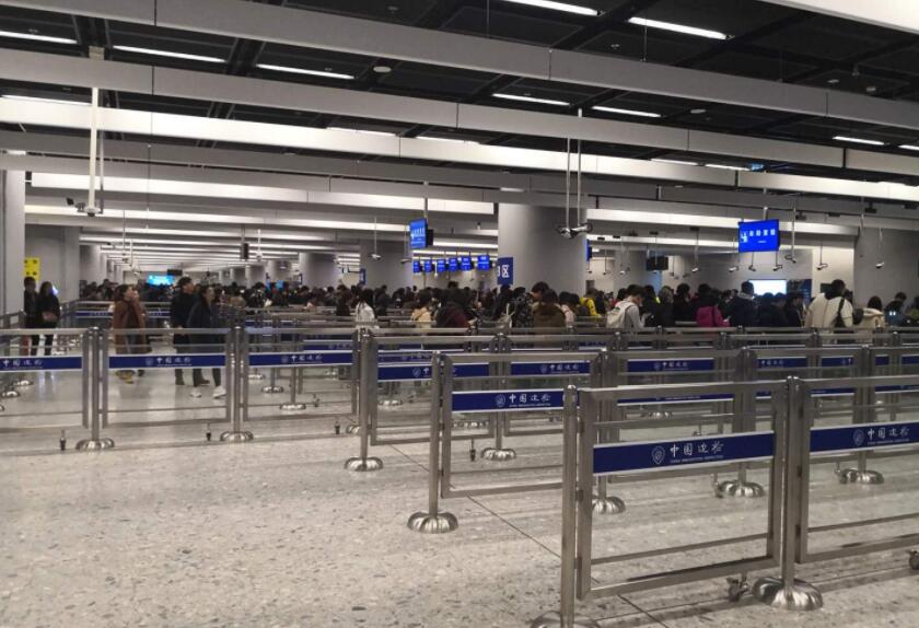 截至下午17时整,广深港高铁西九龙站内地口岸通关顺畅,出境客流量较多,需排队候检;入境客流量较少,通关快捷。