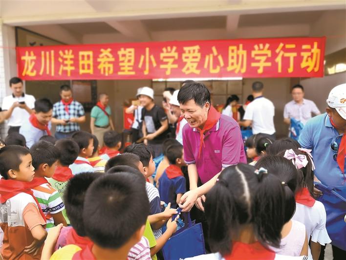 ▲黄尔春参与龙川洋田希望小学助学行动。