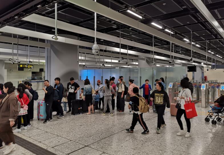 截至16时20分,广深港高铁西九龙站口岸出境客流量较多,入境客流量较少,通关顺畅。