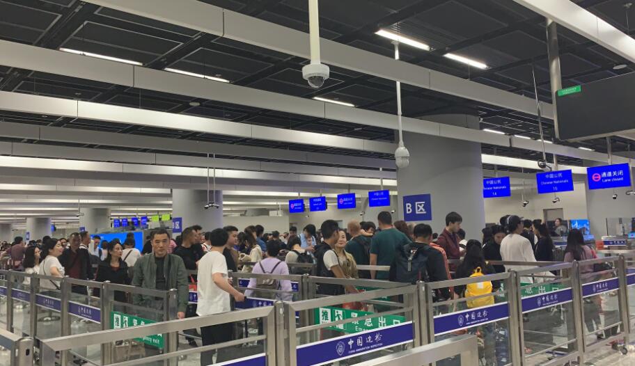 截至16时30分,广深港高铁西九龙站口岸出入境客流量均较多,通关顺畅,秩序井然,设施设备运行正常