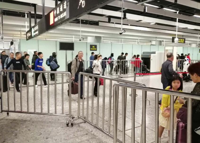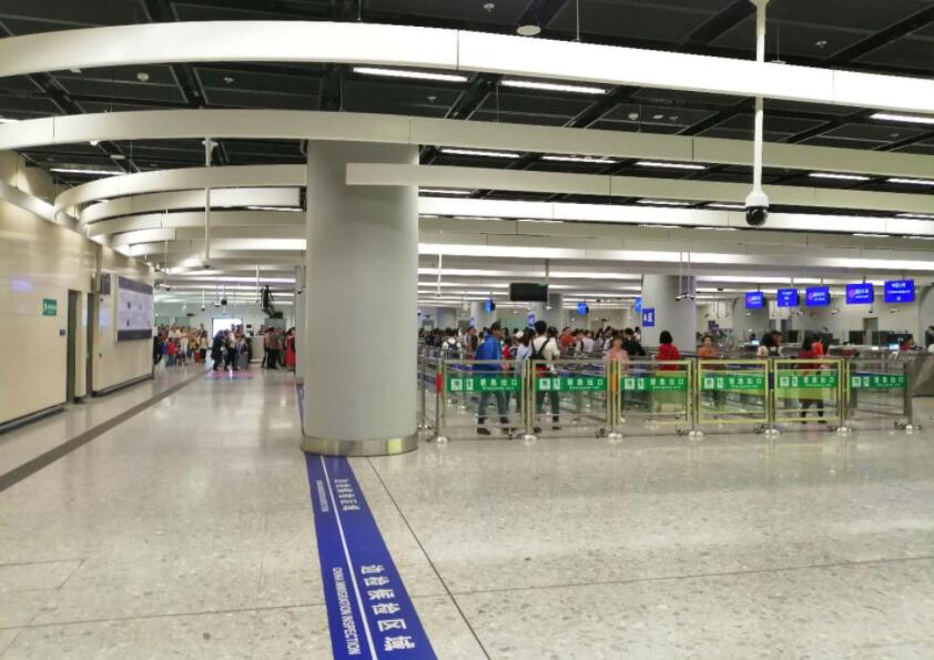 截至9时05分,广深港高铁西九龙站口岸出境客流量较多,入境客流量较少,通关顺畅,秩序井然,设施设备正常运行。