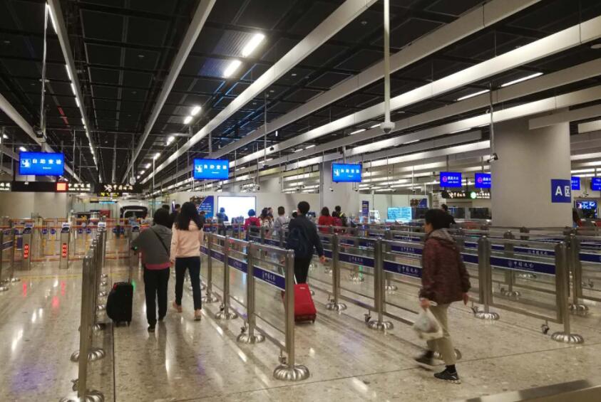 截至9时,广深港高铁西九龙站口岸出境客流量较多;入境客流量较少,通关顺畅,秩序井然。