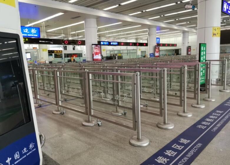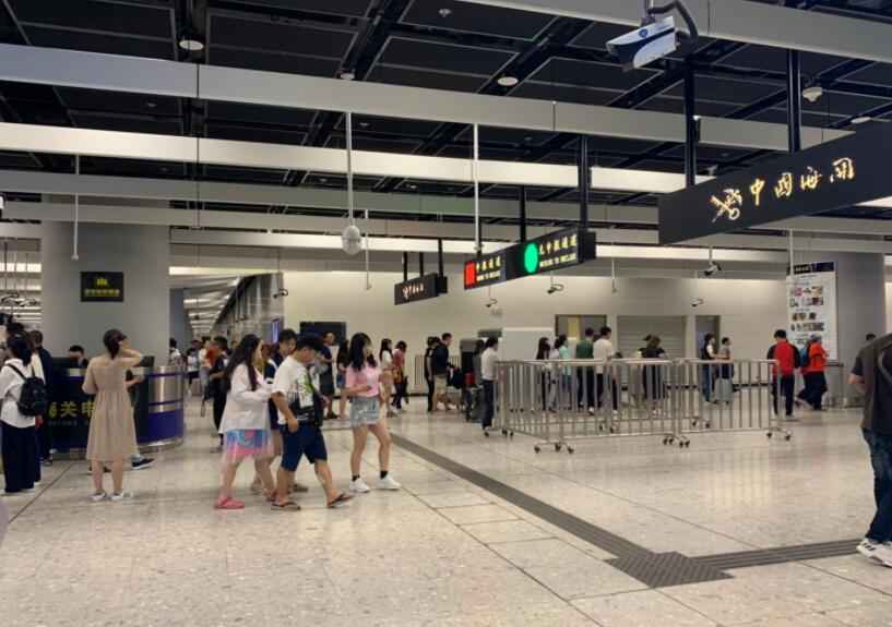 截至上午9时07分,广深港高铁西九龙站口岸出入境客流量均较少,通关快捷、有序。