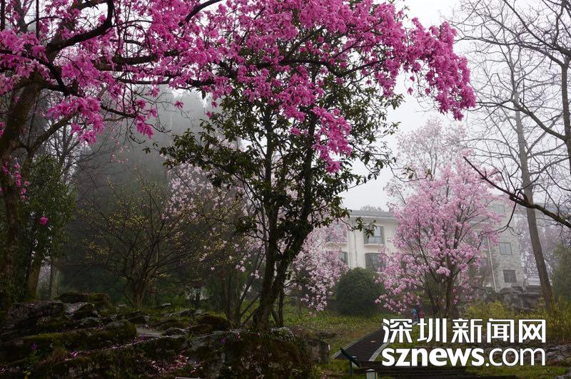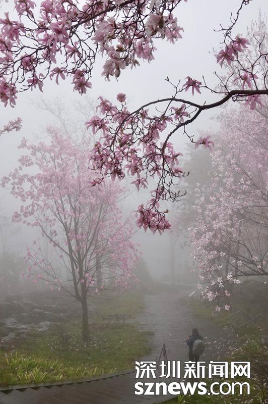 雨雾濛濛之中观赏盛开的辛夷花,宛若置身仙境......李仁奇 摄