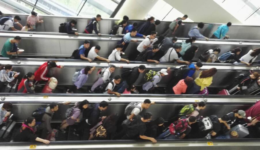 截至上午8时55分,福田口岸出境客流较多,自助通道、人工通道均存在排队等候现象;入境客流较少,通关快捷,秩序良好;停车场车位已满,外围道路车辆有排队现象。