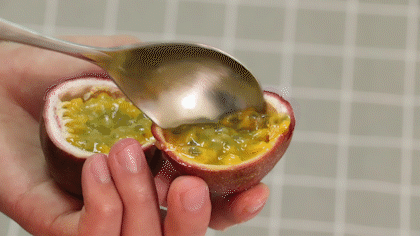 想象一下,在一个闷热的午后,切开一颗从冰箱里拿出来的百香果,直接一勺子舀送到嘴里,一身的暑气都被它的酸爽味占领了!