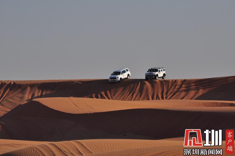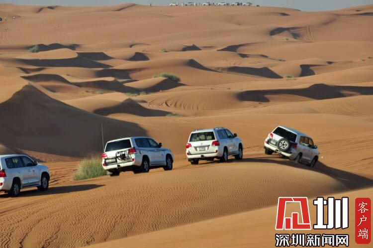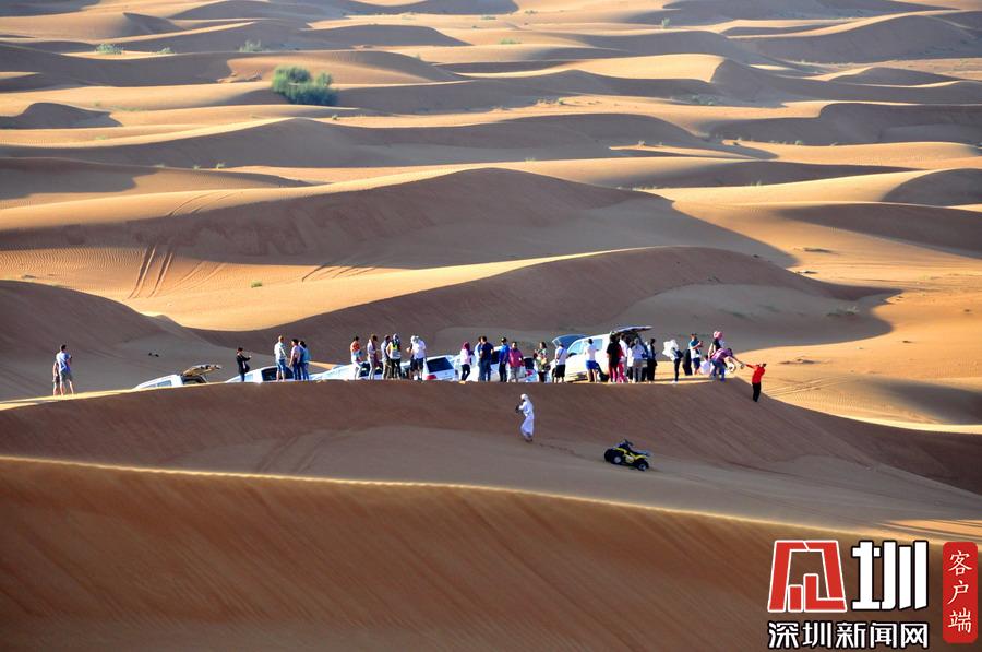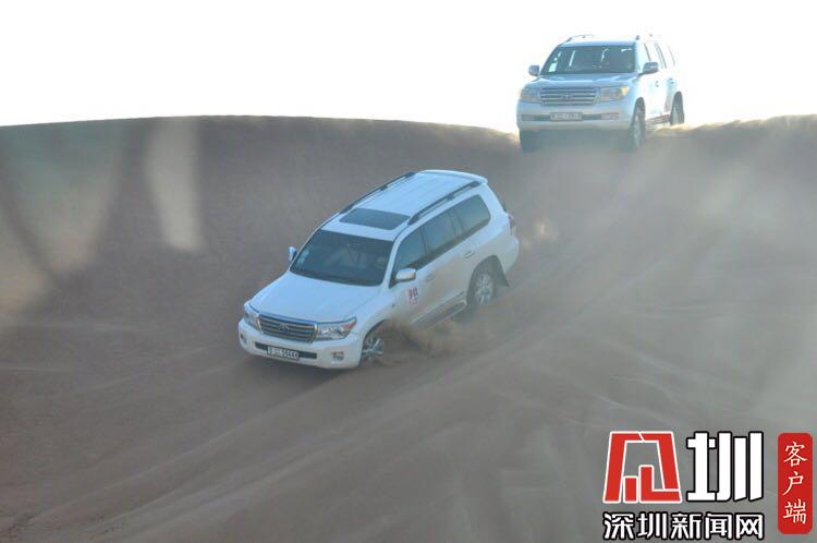 去迪拜,一个最不可错过的体验项目就是"冲沙"。所谓冲沙,就是高速的车在沙丘里不断爬坡、俯冲、腾飞、落下等等一系列惊险的动作。李仁奇摄