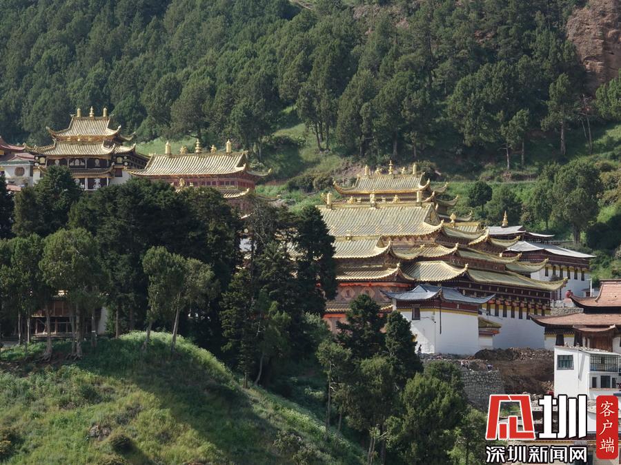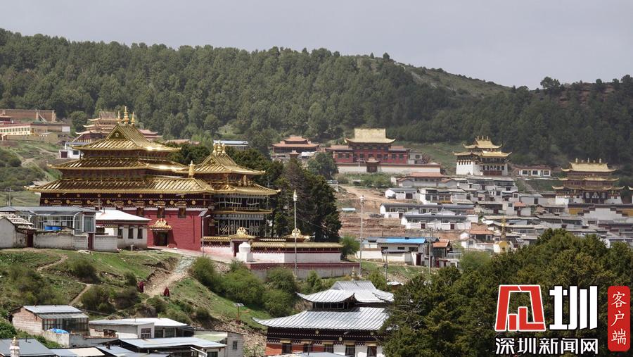 镇内的主要街道分属两省管辖。南北两端,几百米之内,有两座壮观宏大的寺院建筑群隔“江”(白龙江源流)相望,甘肃境内是“赛赤寺”。四川境内有“格尔底寺”。李仁奇摄