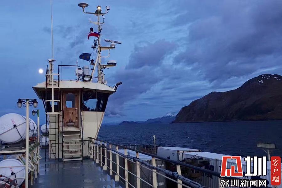 从智利南极大区首府蓬塔阿雷纳斯登上每周一班的滚装船前往威廉斯港,轮船在火地岛西南的岛礁群中迂回穿行30个小时后到达目的地。李仁奇摄