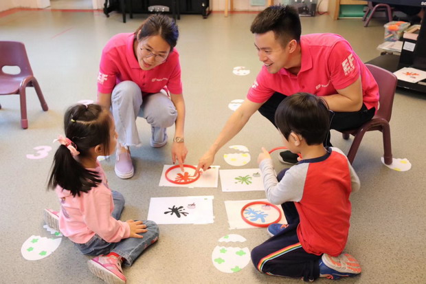 每周二都有一群来自英孚的中外志愿者老师前往深圳市特殊需要儿童早期干预中心,为中心内进行听力康复训练的孩子带来公益英语课。英孚教育为该公益项目所提供的课程是基于其自主研发的英孚幼儿英语探索课程,运用英孚教育特有的“学习—尝试—应用”教学和学习模式,循序渐进地掌握英语。同时,针对听障儿童的特点,英孚志愿者老师们在教学方法和课程进度上都进行了相应的调整,加入发音位置的强化训练以及更多互动环节,并通过电影、歌曲、童谣、手工等多种教学手段全方位激发孩子感官潜能,帮助小朋友学习一门全新的语言的同时,增强开口交流的自信心。目前,该项目已在深圳市特殊需要儿童早期干预中心开设两个班级,已有43名英孚员工加入志愿者队伍,累计志愿者服务时间超过177小时。