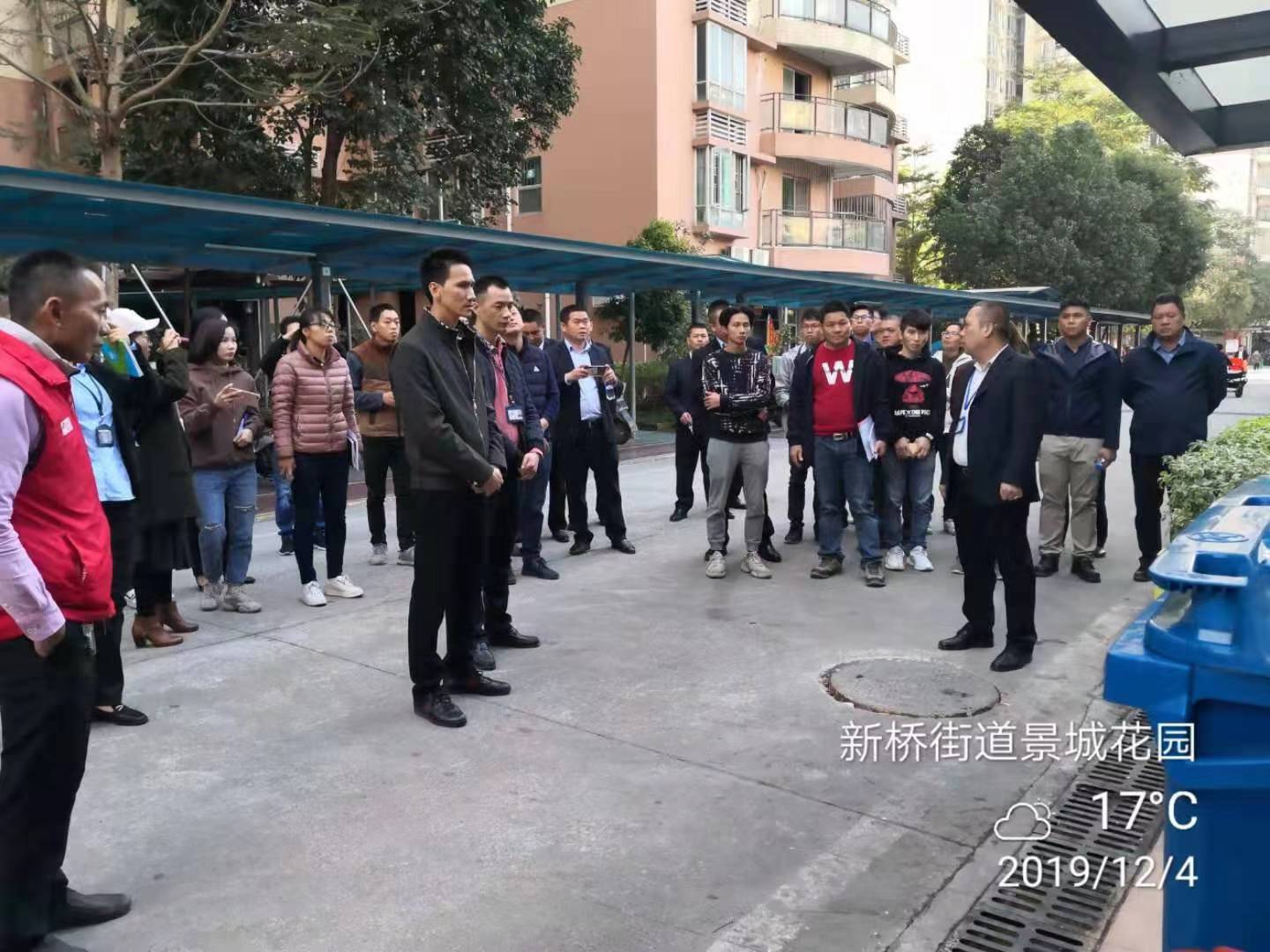 交流会首先由景城花园物业管理外负责人带领各参会人员对小区内升级改造的垃圾分类桶点设施、垃圾分类达人光荣榜、垃圾分类背景知识展板等进行参观和学习,并对创建示范小区的创建工作进行了经验分享,参会人员现场展开热烈讨论和工作分享;随后,敏坚同志对新桥街道生活垃圾分类近期工作总体情况进行深入点评和工作部署,要求各社区、小区能够多方联动,多元拓宽工作思路,把握工作重点,积极主动解决当前工作中的存在问题。敏坚同志强调,厨余垃圾的有效分类和及时收运,对整个小区环境和居民健康有着积极的重要意义,物业小区尤其要重视厨余垃圾收运工作,对标准,找差距,高质保量做好厨余垃圾收运工作。