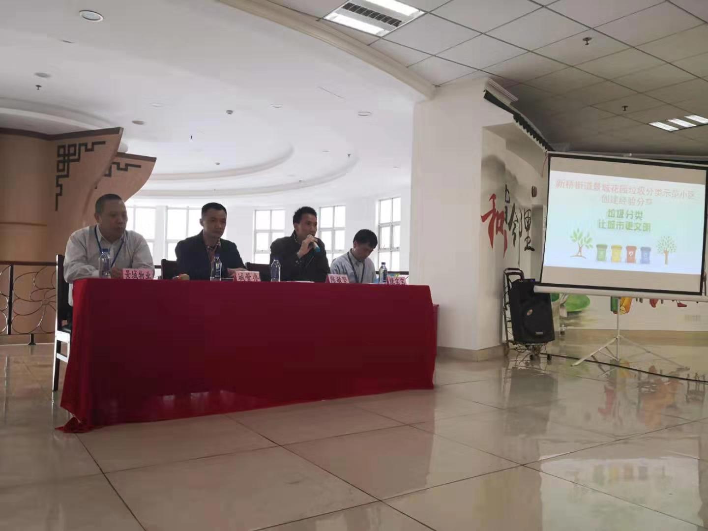深圳新闻网讯 为扎实推进宝安区新桥街道生活垃圾强制分类工作,树立垃圾分类示范小区优秀标杆,以点带面提高新桥街道垃圾分类管理水平,12月4日下午,由新桥街道主办、景城花园管理处、绿宝宝分类指导中心协办的“新桥街道景城花园示范小区垃圾分类学习交流会”在景城花园邻里文化活动中心召开。新桥街道街道办事处副主任陈敏坚同志率队出席了本次交流会,街道城管办相关负责人及分类组工作人员、7个社区工作站主要负责人和垃圾分类工作人员、街道47个物业小区管理负责人和工作人员、绿宝宝指导中心负责人和工作人员等共计130余人参加了现场交流会。
