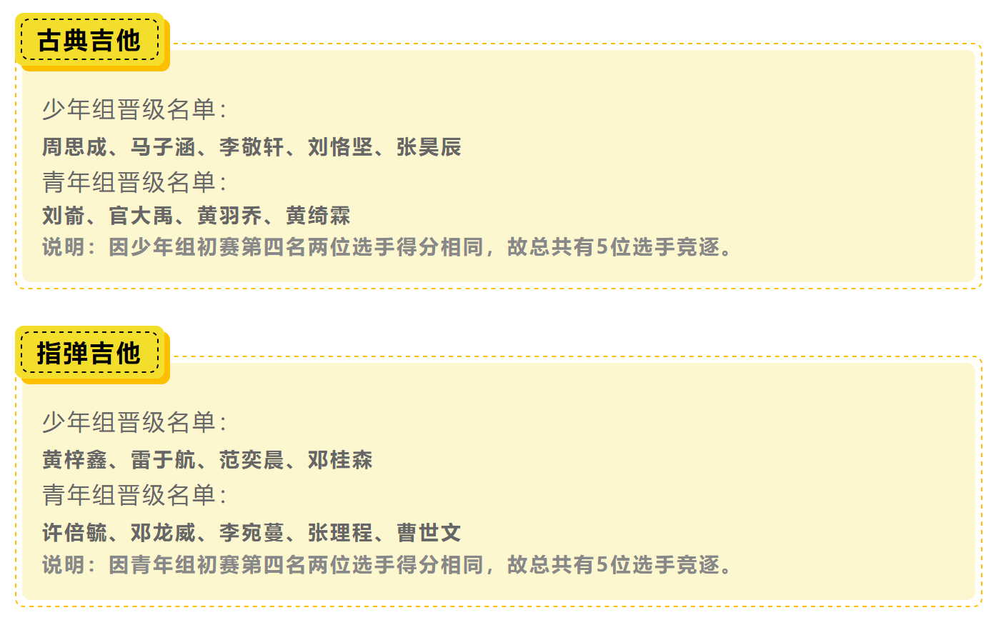 首届“前海吉他&尤克里里大赛”,在短短一个月内收到了全国各地爱好者的踊跃报名!经过了专业评委们对初选综合评分,最终在激烈的角逐下,组委会筛选出八个组别共34位选手入围决赛!