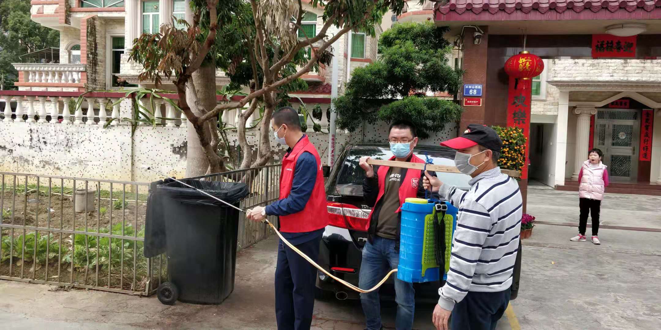 葵丰社区党员群众自主组织消杀工作,对部分居民家以及垃圾堆放点进行消杀