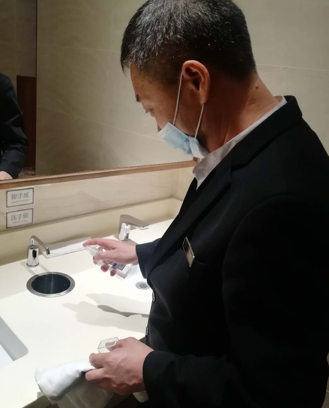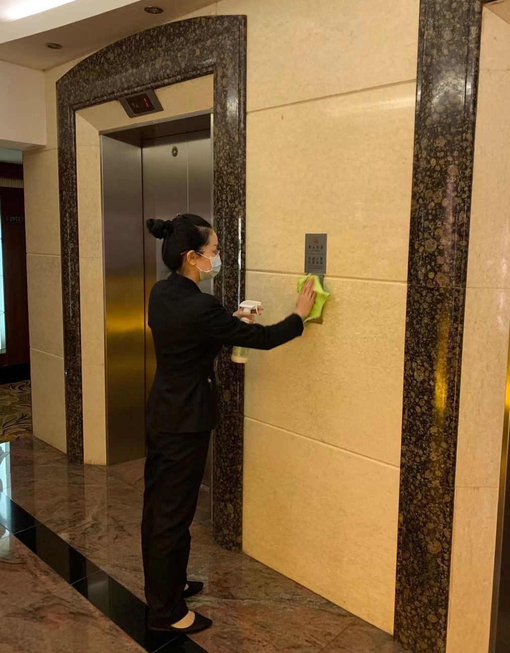 图3:每天定时对公区进行消毒擦拭,为您的安全保驾护航。